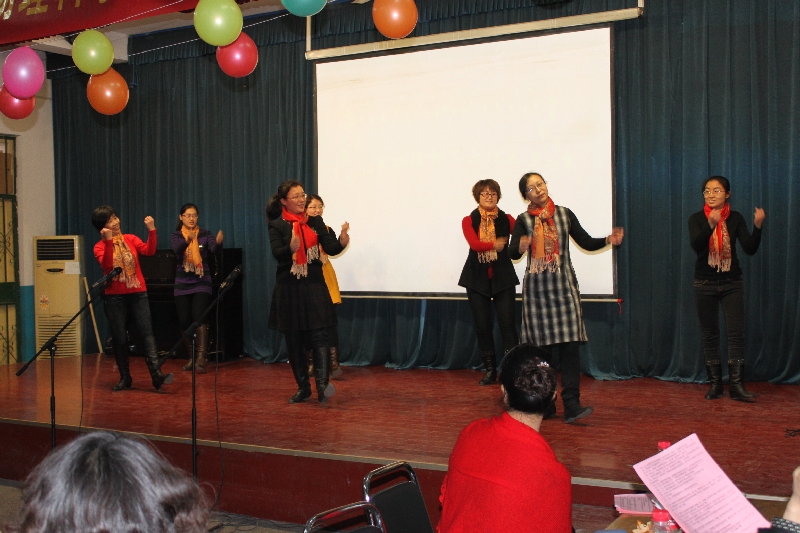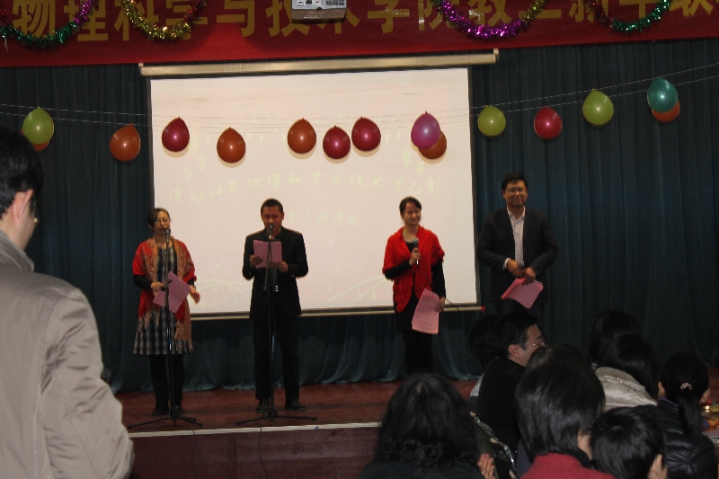 整场联欢会共有20个节目,安排得紧凑活泼、生动有趣,老师们载歌载舞,将一个个精心安排的节目呈现给大家。梁书记王院长的《草原之夜》让大家重温了经典民歌;大学物理教学中心女老师们带来的集体舞《光芒》,用欢快的舞步和灿烂的微笑为大家送上了最真挚的祝福;一曲《盘妻索妻》让我们感受到了越剧的魅力;一段《剑舞》的表演,展示了中华武术的雄武与洒脱;自编自导的民间传统曲艺表演“三句半”幽默风趣,让大家开怀大笑,现场气氛一度达到高潮;在整个节目中,还穿插着“团结协作”“心心相印”等小游戏,老师们都积极参与,笑声连连,整场联欢会掌声不断,笑声不断,呐喊声不断,洋溢着幸福、欢乐的气氛。