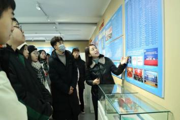 随后,师生代表来到舜道艺术馆参观正在展出的贺惠邦先生手书毛泽东诗词楹联题词作品和《没有共产党就没有新中国》百年馆藏报纸资料,大家在气势恢宏的书法作品、真实详尽的史料中共同体悟曾经那段波澜壮阔的红色记忆,激发奋进新时代的强大力量。