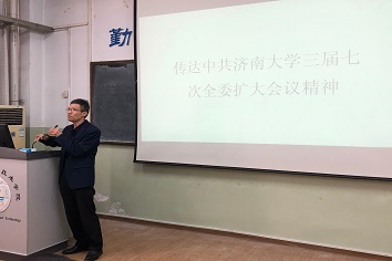 召开全院教职工大会,传达中共济南大学三届七次全委扩大会议精神,对2021年学院工作做出部署安排。会议由学院党委书记郑爱华主持,学院全体教职工参加。
