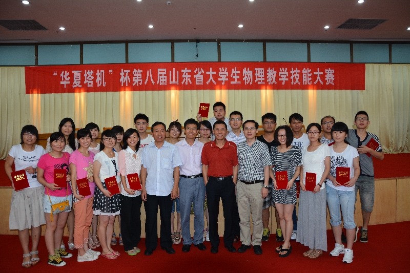 2013年7月17~20日,“华夏塔机”杯山东省第八届大学生物理教学技能大赛在山东临沂大学成功举行。本次大赛由山东省物理协会主办,山东临沂大学承办,来自全省各高校的160余名选手参赛(其中研究生1名)。我校共派出21名选手参赛,获得优秀团体奖1项,一等奖9名,二等奖7名,三等奖5名的好成绩。王丽凡同学代表学校进行了教学技能展示。